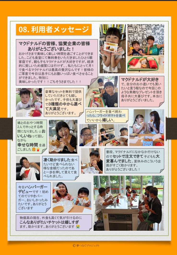 2025年マクドナルド特別お食事券事業 報告書は下記から