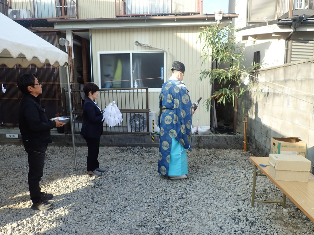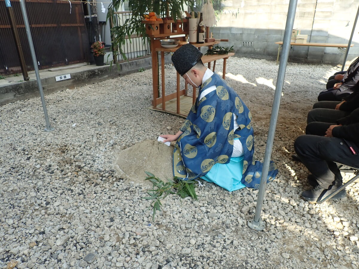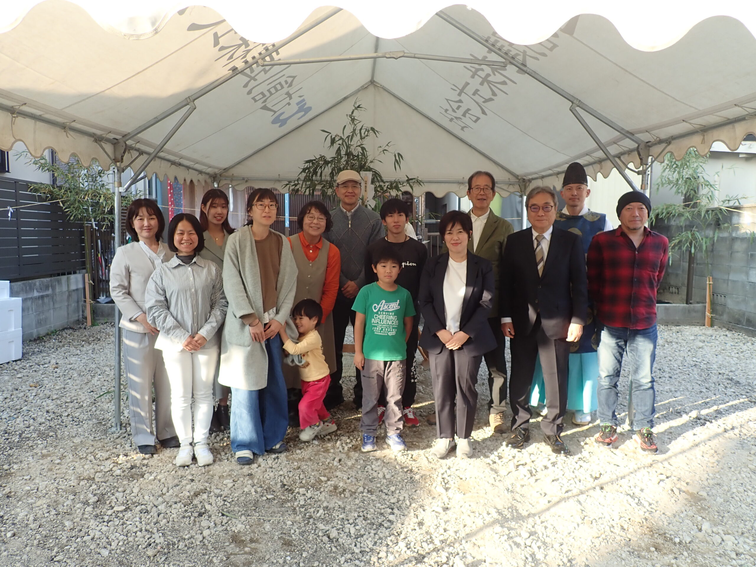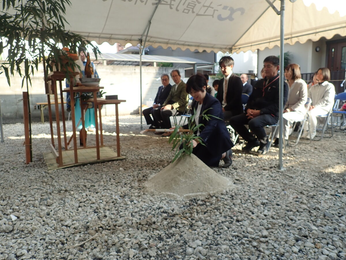 天候に恵まれた去る11月14日 つなぐカサ建築の地鎮祭が執り行われました。